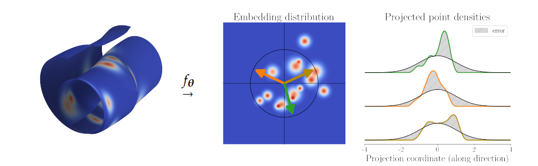 LeJEPA 的核心思想是:与其在高维空间中直接拉伸或挤压这些特征点,不如从多个随机方向上对它们进行“降维投影”,然后检查这些投影是否符合我们期望的完美形状。