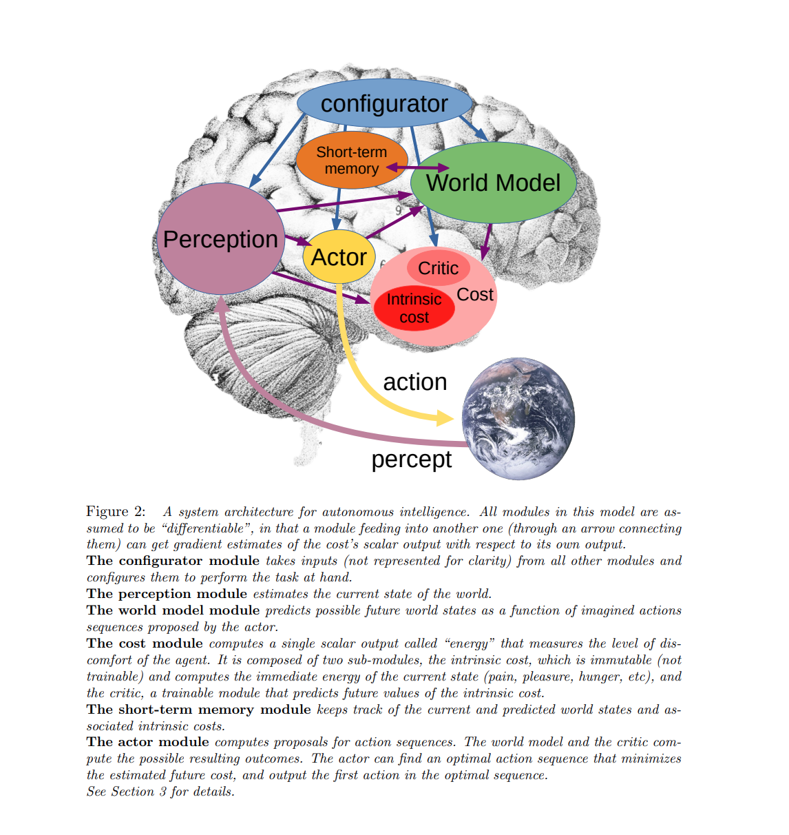 如果说Ha的论文是证明世界模型是有用的,LeCun就是在追问那世界模型应该长什么样。Lecun在论文中指出动物和人类展现出的学习能力和对世界的理解远远超过了当前的AI。