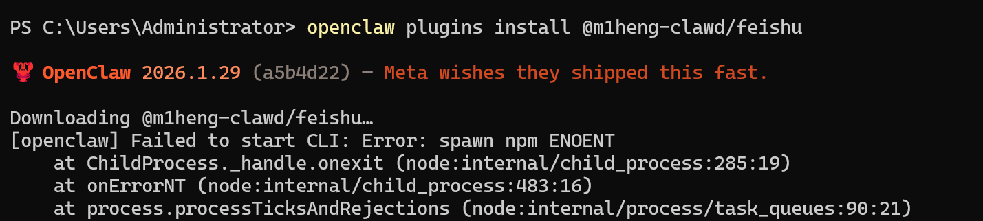打开powershell,输入以下命令,安装飞书插件: