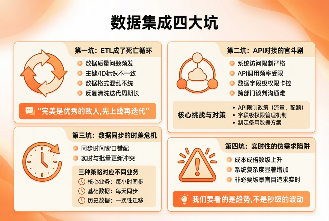 数据集成就像修房子,基础要牢,但不一定要用最好的材料;外观要美,但不一定要追求豪华。实用、稳定、可维护才是王道。