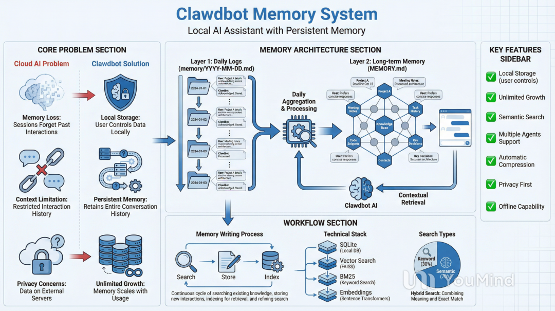 └─────────────────────────────────────────────────────────────┘Clawdbot的记忆系统之所以成功,是因为它遵循了几个关键原则: