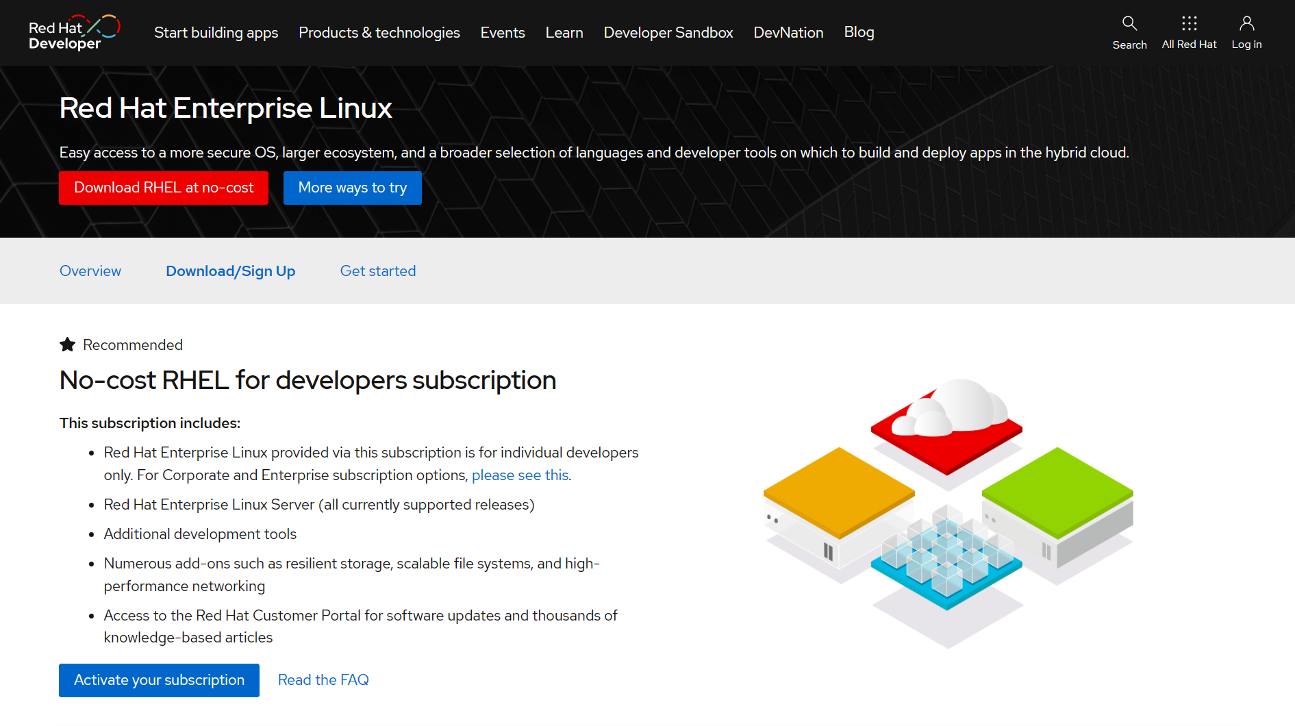 Red Hat Enterprise Linux Download | Red Hat Developer,下滑看到No-cost RHEL for developers subscription 面向开发人员的免费 RHEL 订阅,选择Activate your subscription 激活你的订阅;