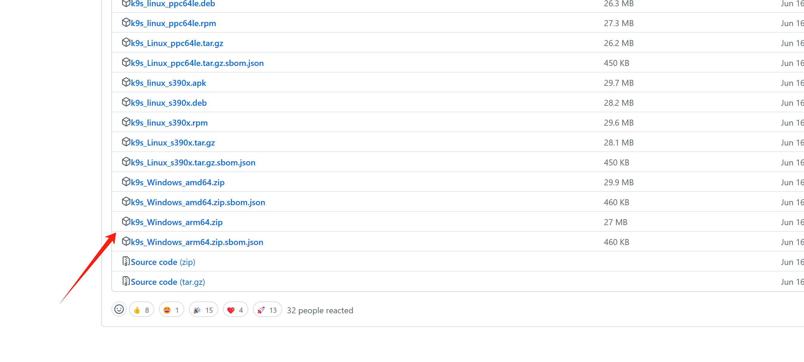 找到最新版本的 K9s,下载适用于 Windows 的压缩包文件。