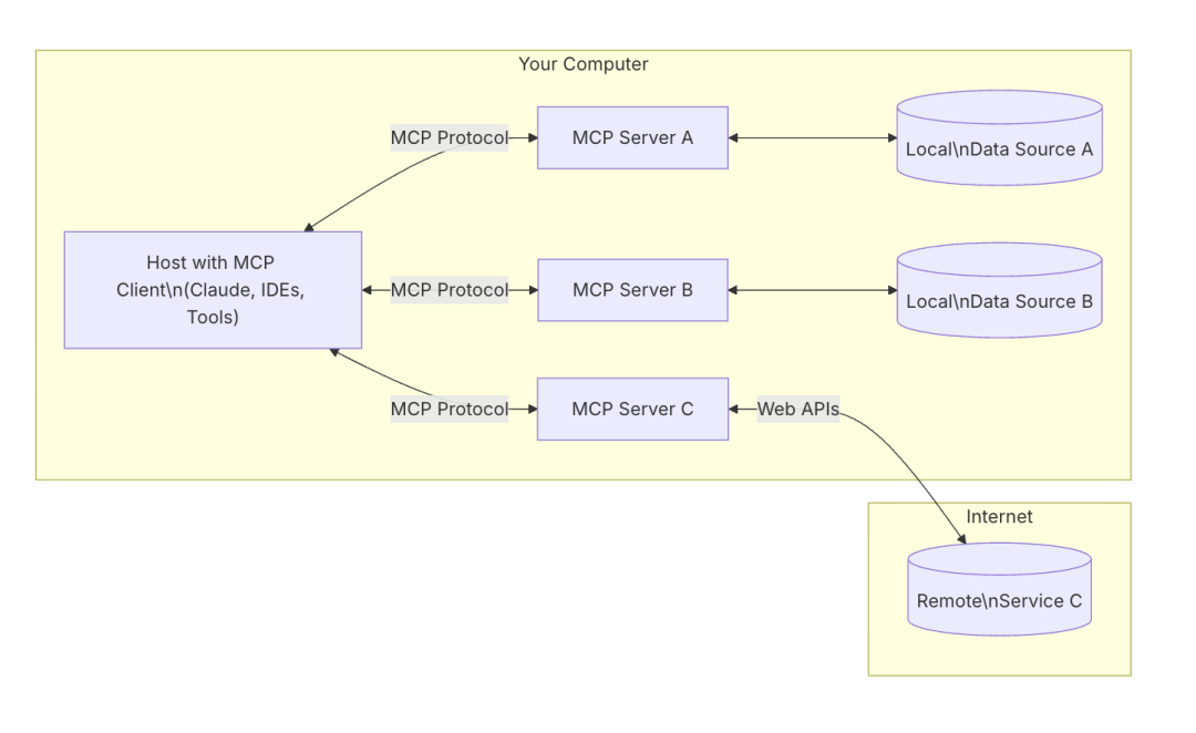 这些组件共同工作,形成了一个完整的生态系统,让Al模型能够安全、高效地访问各种数据和工具