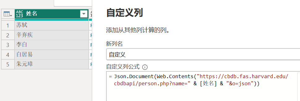 Json.Document(Web.Contents("https://cbdb.fas.harvard.edu/cbdbapi/person.php?name=李白&o=json"))
