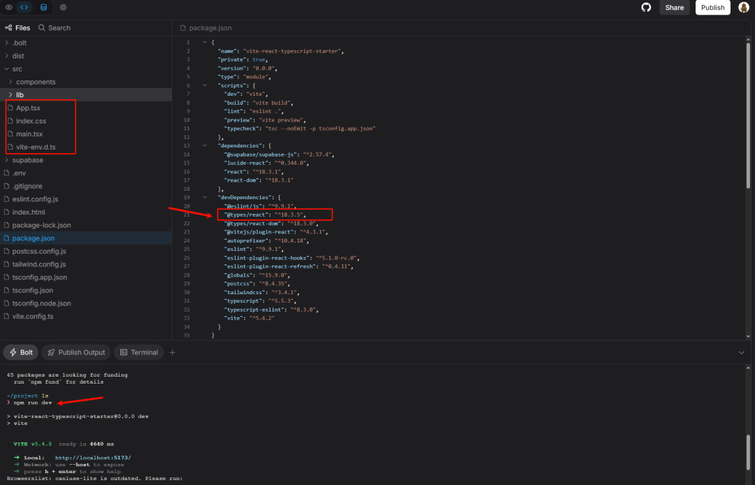 你可能会问,你怎么知道AI选用的是React框架呢?答案,当然是直接看AI生成的项目源码了啊。