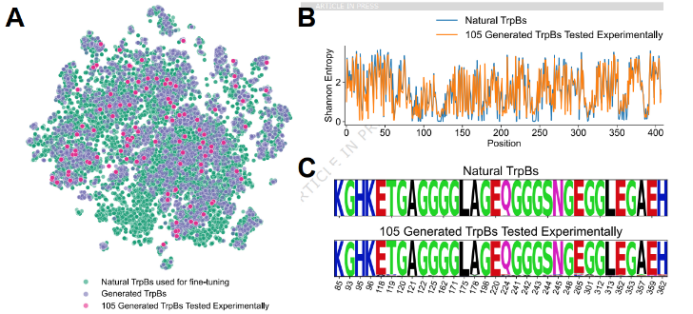大家好,今天给大家分享一篇最近发表在Nat. Commun.上的文章,题目为Sequence-Based Generative AI Design of Versatile Tryptophan Synthases。文章的通讯作者是来自Caltech的Frances H. Arnold教授和Anima Anandkumar教授。