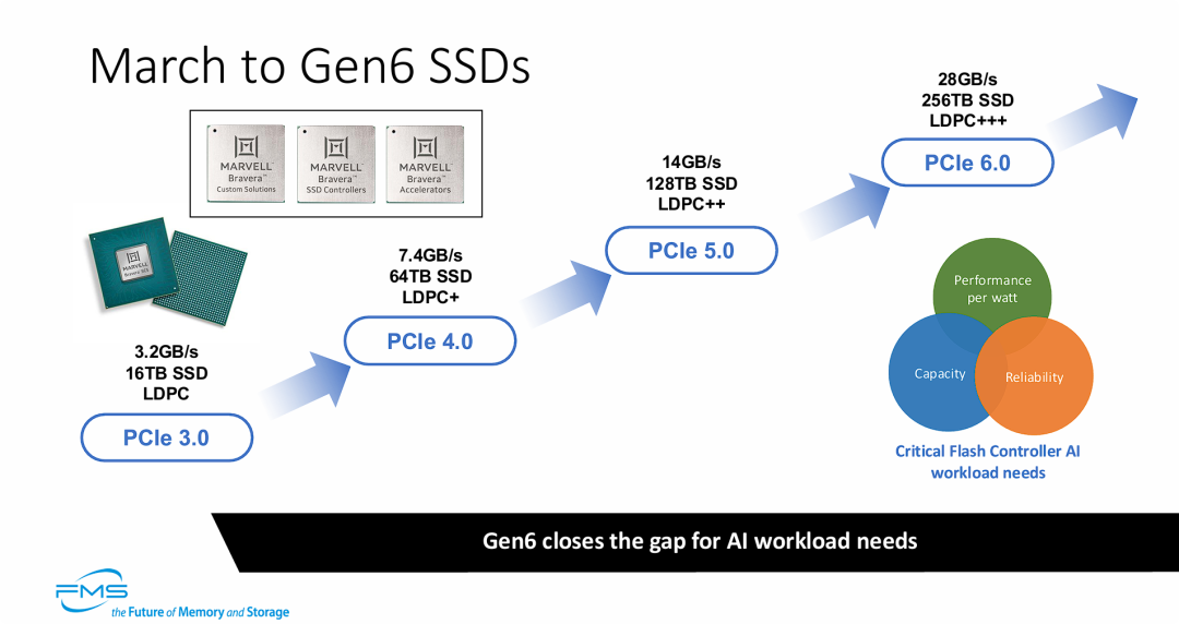 - 纠错能力的必要升级: 随着速度提升(特别是 Gen6 引入 PAM4 调制),信号完整性挑战变大,必须配套更强的 LDPC+++ 纠错算法。