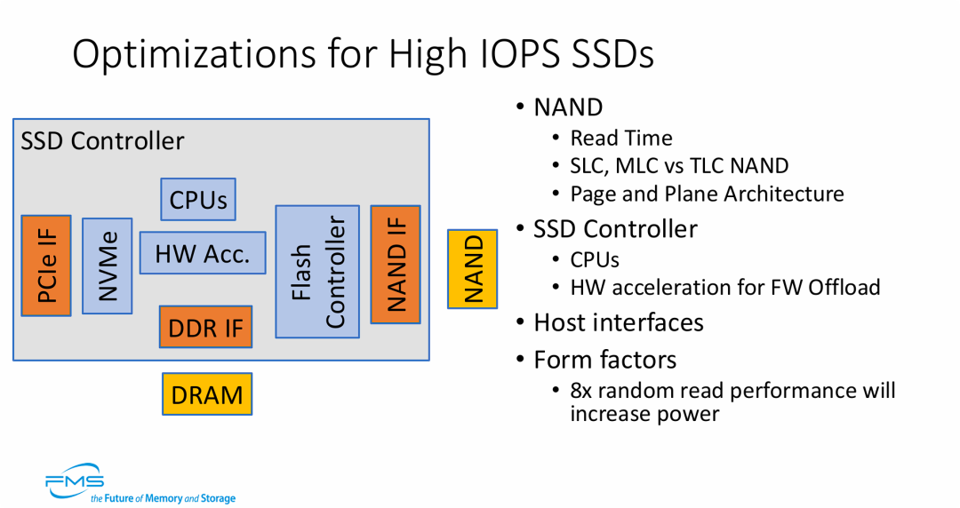 图片的核心观点是:要实现 AI 所需的极致 IOPS,必须对 SSD 进行全链路的深度优化,并接受功耗上升的代价。