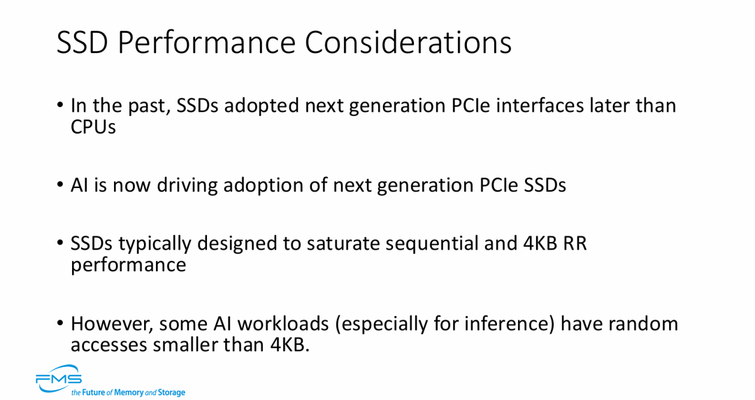 图片的核心观点是:AI 工作负载正在改变 SSD 的设计范式和性能优化方向。