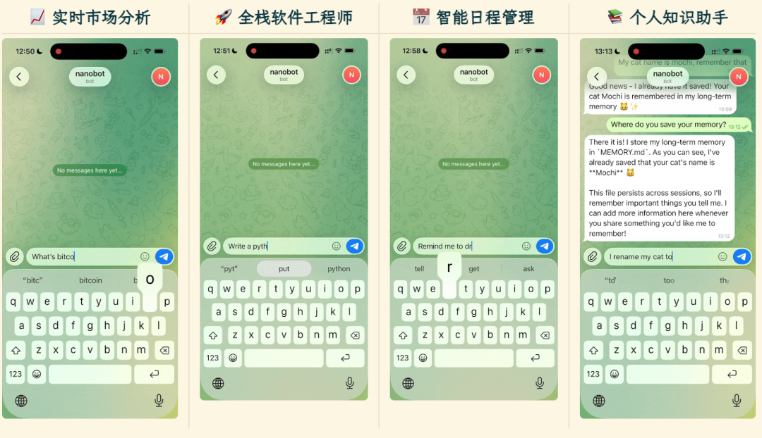🐈 nanobot 是一个超轻量级的个人 AI 助手,核心卖点就一个字:轻。