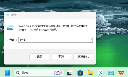 1、 我们在windows按下 Win+R键,输入cmd,开启窗口