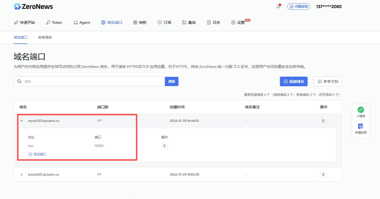 Port:通过 ZeroNews 配置的映射的 端口,如 12000