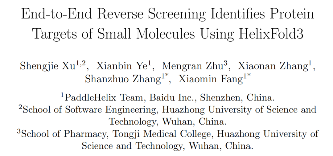 近期,百度PaddleHelix团队在预印版的研究论文《End-to-End Reverse Screening Identifies Protein Targets of Small Molecules Using HelixFold3》,提出了一种基于HelixFold3的端到端反向筛选策略,从根本上缓解了传统方法的技术瓶颈,为药物研发提供了高效工具。
