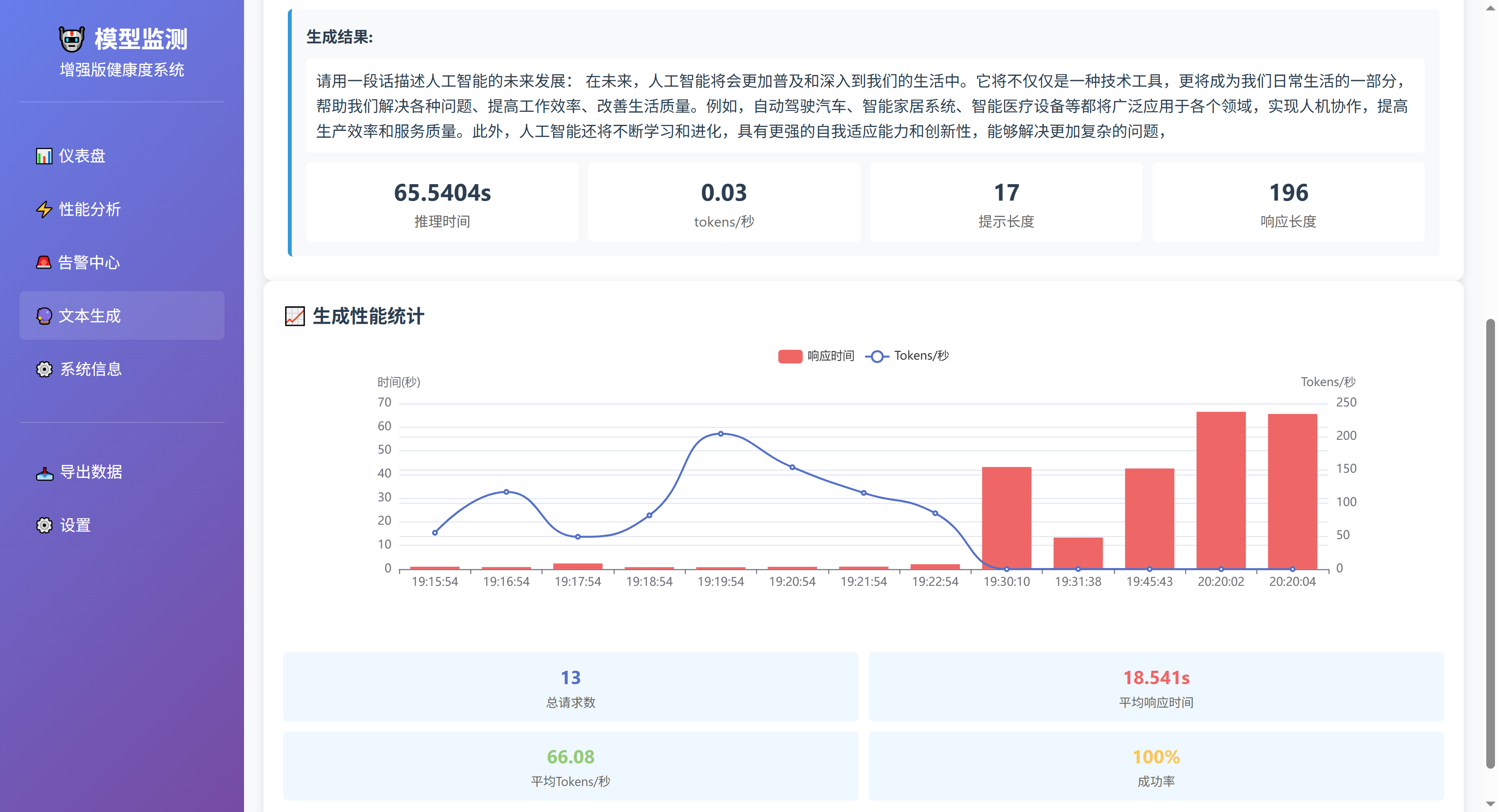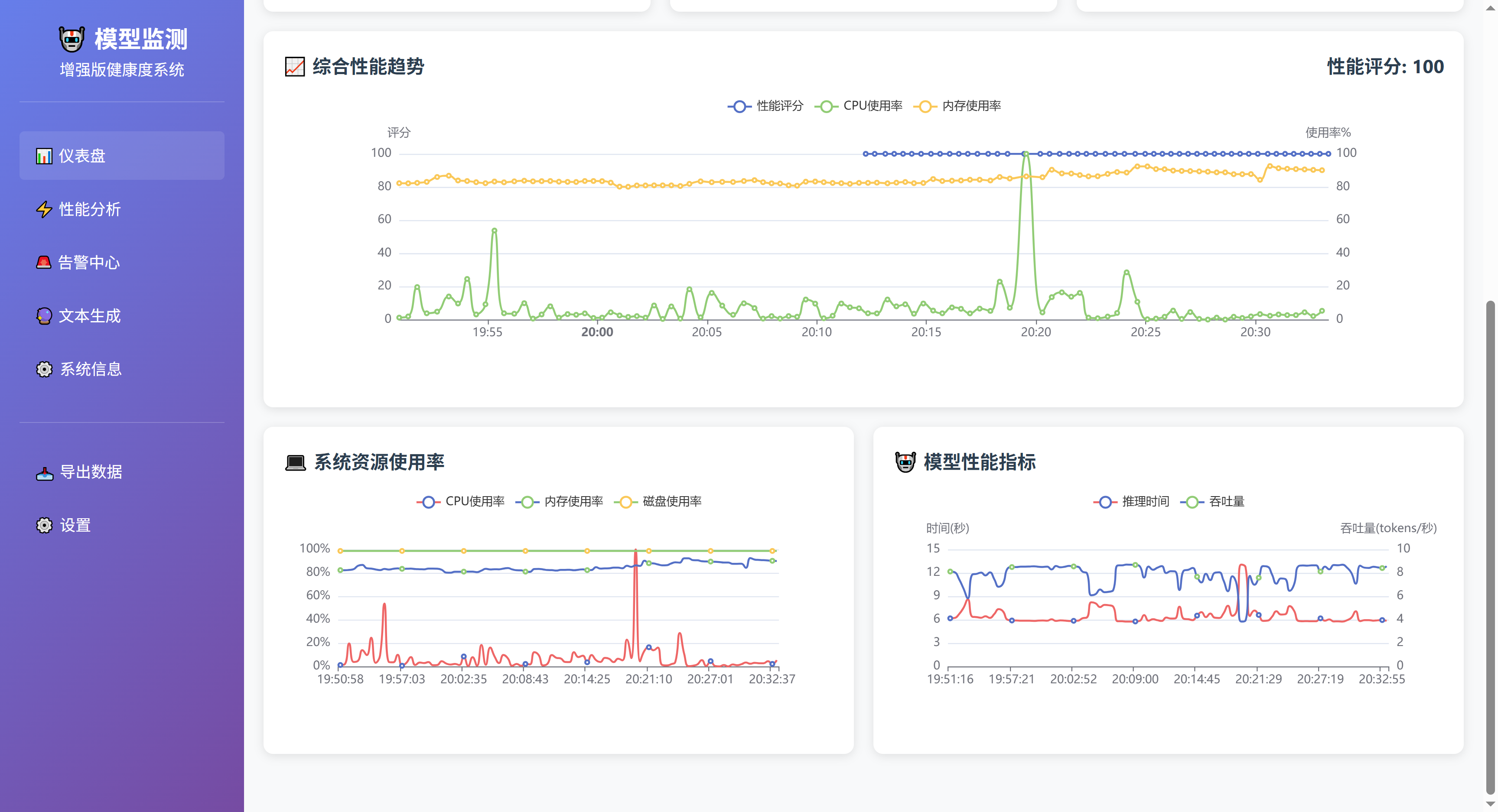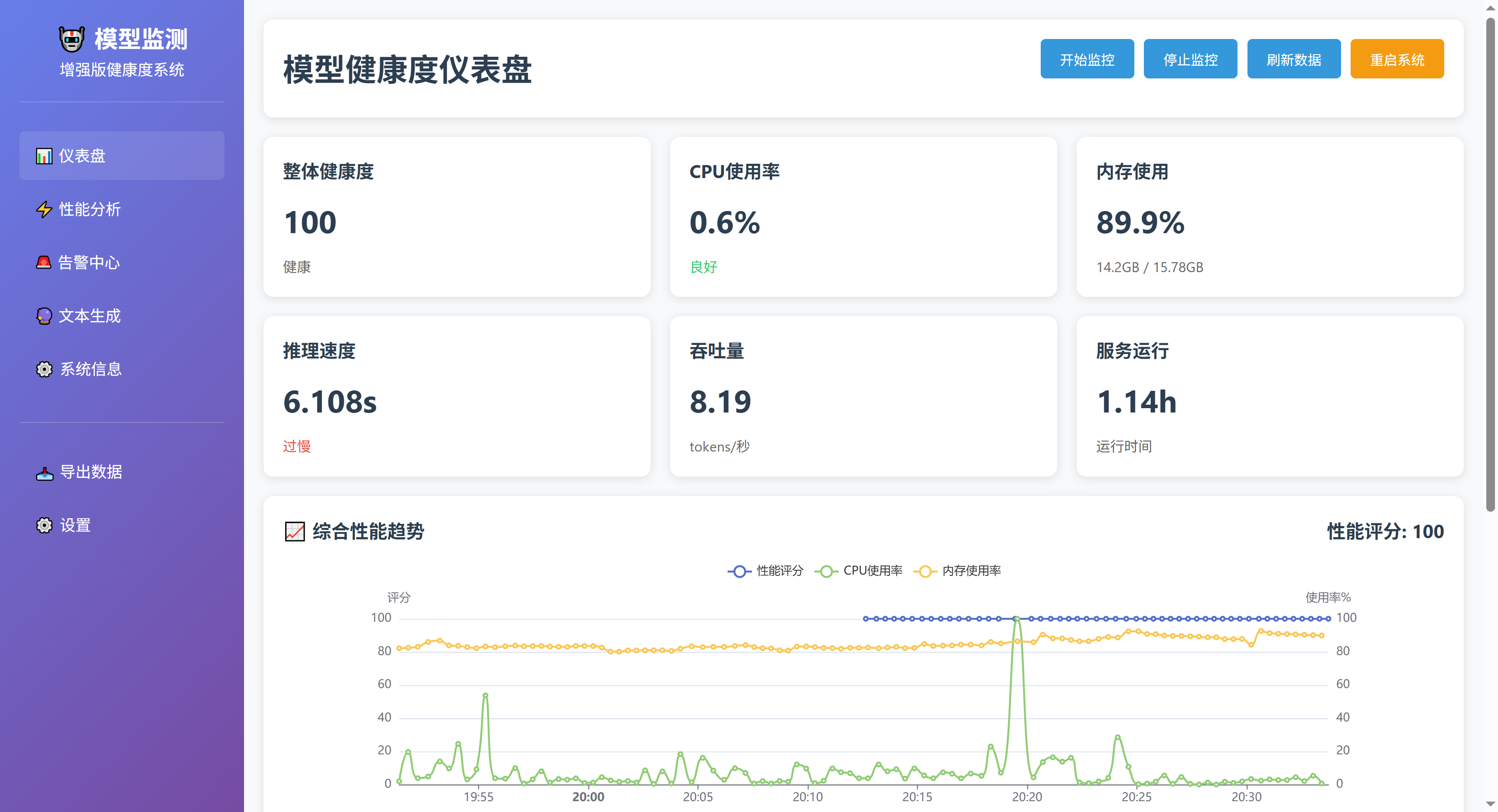 系统初步实现了对模型健康监测的服务运维监控体系,基于Flask框架确保API服务的稳定性,多线程监控保证数据实时性,内存队列存储控制资源消耗,整体方案技术风险可控,部署维护成本合理。