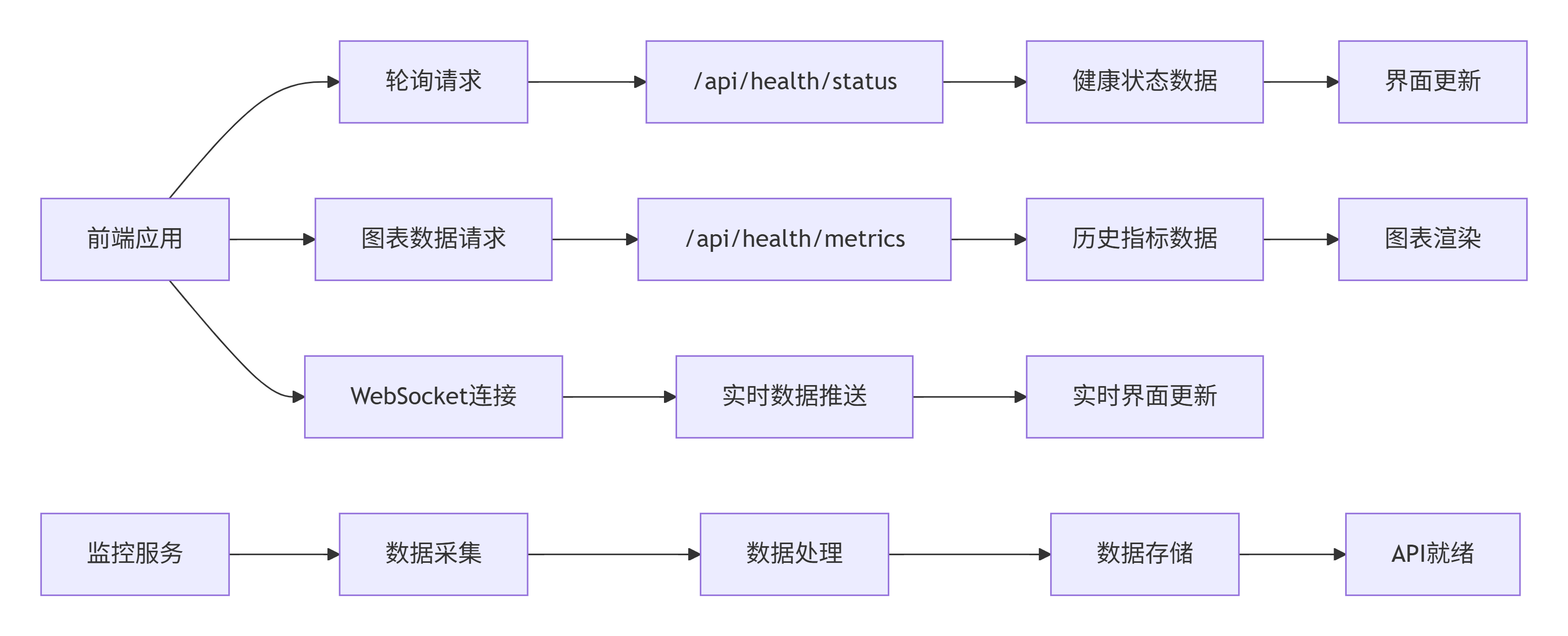 }系统采用生产者-消费者模式,监控线程作为生产者持续收集各类指标数据,API服务线程作为消费者提供实时查询接口,同时前端展示层作为最终用户界面呈现可视化数据。这种设计形成了完整的数据闭环: