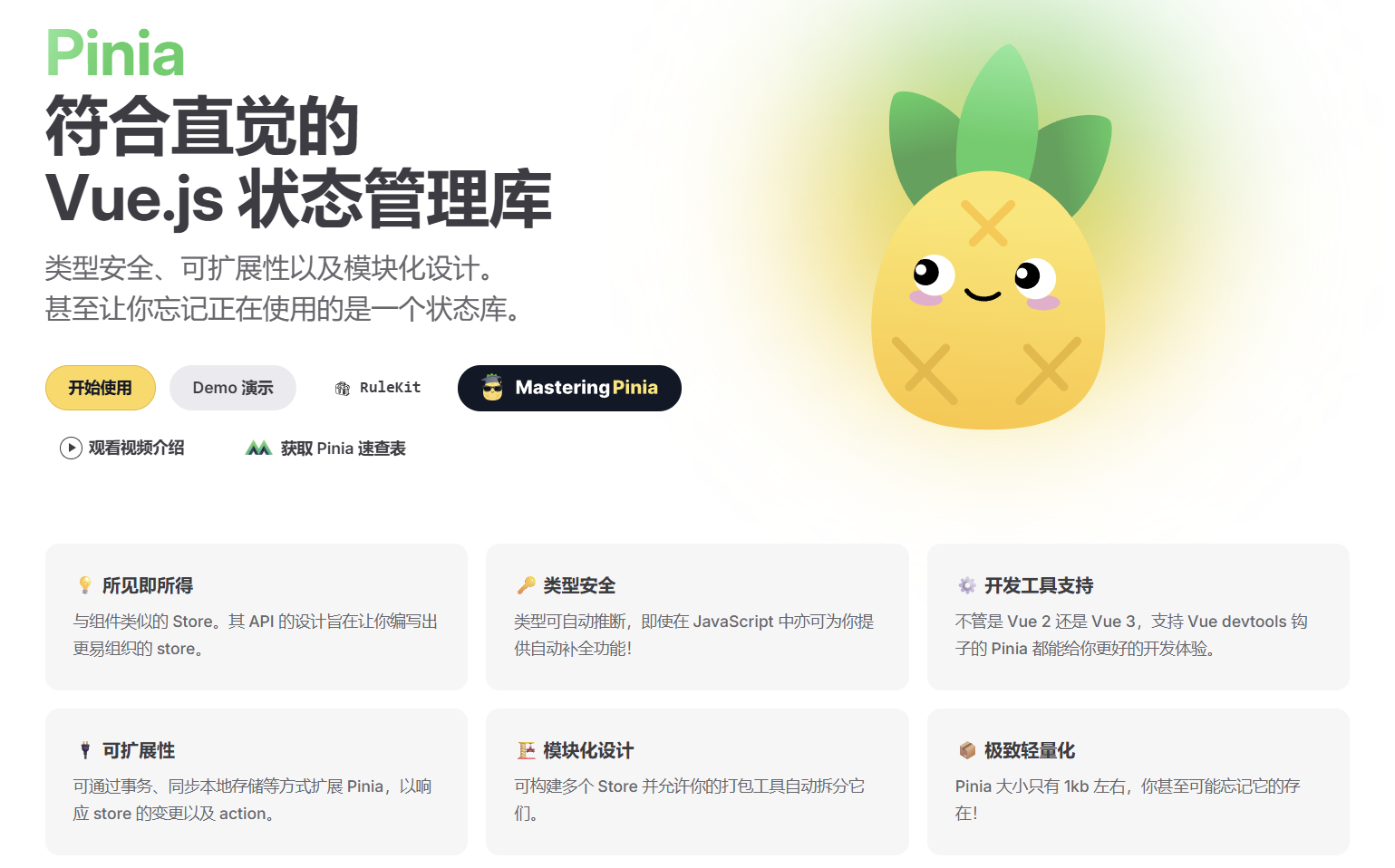 Pinia 是一个状态管理工具,Vue的专属状态管理库,它允许你跨组件或页面共享状态,让多个组件共享数据。