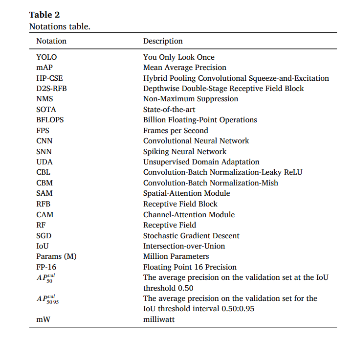 与此同时,一种新的研究范式侧重于通过仿生网络架构实现超低功耗。其中一个例子是SU-YOLO [35],它为水下检测任务引入了脉冲神经网络(SNN)。该方法使用事件驱动框架和创新模块(如SpikeDenoiser和分离批量归一化(SeBN))来在嘈杂环境中实现高能效和鲁棒性。他们的方法主要针对特定领域应用和神经形态硬件进行优化。相比之下,我们在本文中提出的模块在传统CNN框架内运行,优先考虑最大检测精度和轻量化设计,以处理高方差、通用目的的数据集和任务。通过利用标准浮点运算,我们提出的模块对于主流边缘CPU和GPU上的通用目标检测部署仍然具有高度竞争力,填补了不同于高效率脉冲模型的操作利基。在本文中,我们探索了可添加到YOLO架构颈部和骨干网络的额外轻量级模块,以改进特征融合和特征上下文。