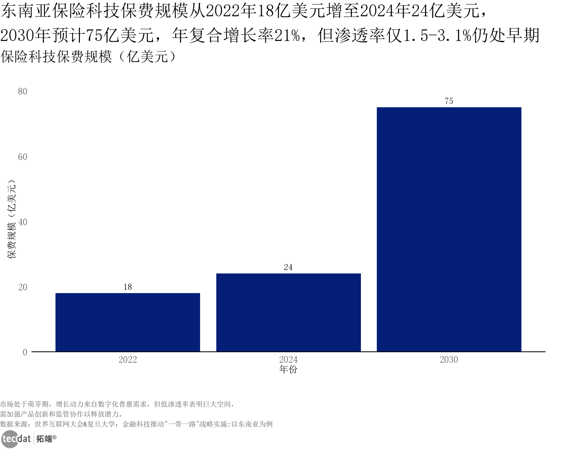 东南亚保险科技保费规模条形图表19数据及PDF模板已分享到会员群 3秒解读:东南亚保险科技保费规模2022年18亿美元,2024年24亿美元,2030年预计达75亿美元,年复合增长率21%,但渗透率仅1.5-3.1%,处于发展初期。 对应人群行动建议:保险科技企业可深耕东南亚市场,推出本土化产品;政策制定者可完善监管框架,助力市场规范发展。 从生态合作来看,金融科技企业与传统金融机构的协同成为主流。90%的支付专家认为, fintechs将与传统 providers互补或合作,而非替代。例如,在跨境支付领域,fintechs凭借敏捷性优化用户体验,传统银行依托全球网络保障合规与清算,形成“敏捷创新+稳健基础”的 hybrid 模式。