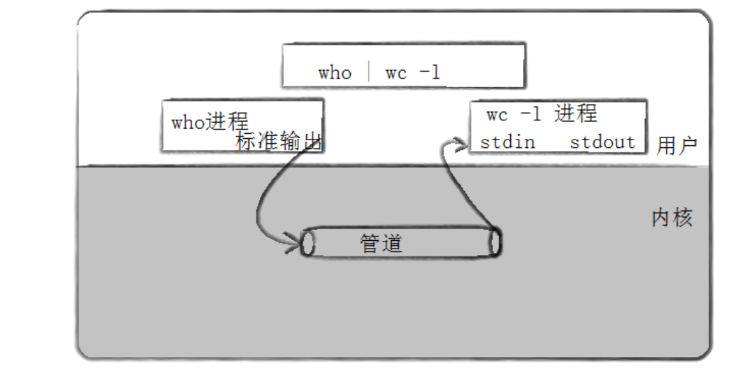 最经典的管道使用场景就是 Linux 命令行中的管道符|,比如我们常用的who | wc -l:
