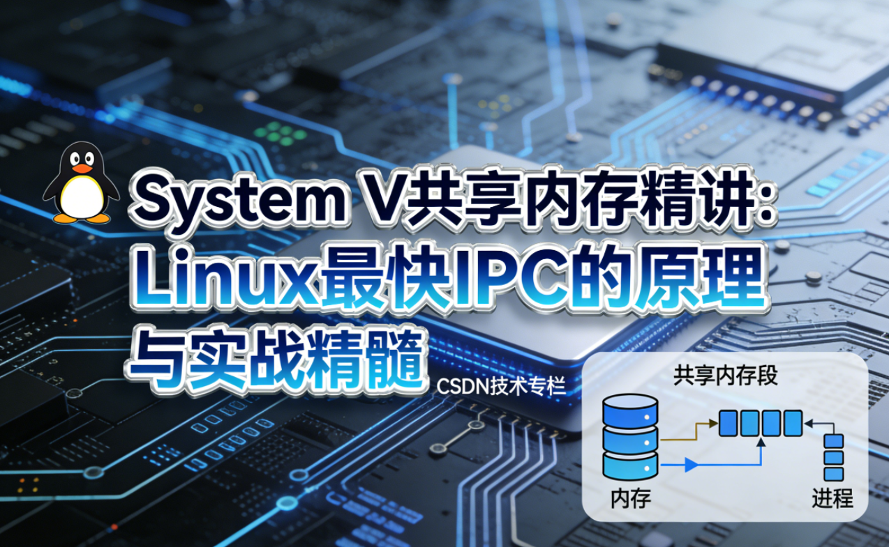 在 Linux 进程间通信的大家族中,System V 共享内存是性能天花板般的存在 —— 它是最快的 IPC 实现方式,没有之一。不同于管道(匿名 / 命名)的内核缓冲区中转、消息队列的内核封装,共享内存让多个进程直接访问同一块物理内存,进程间数据传递彻底摆脱内核系统调用的开销,实现了真正的 “内存级” 数据交互。 但天下没有免费的午餐,极致的性能背后是缺乏原生的同步与互斥机制,这也让共享内存的使用门槛远高于管道和消息队列。本文将从 System V 共享内存的核心原理出发,一步步拆解其设计思想、数据结构、核心函数、实战开发,还会讲解如何解决其同步问题,让你彻底吃透这一高性能 IPC 方式,从原理到实战拿捏到位。下面就让我们正式开始吧!