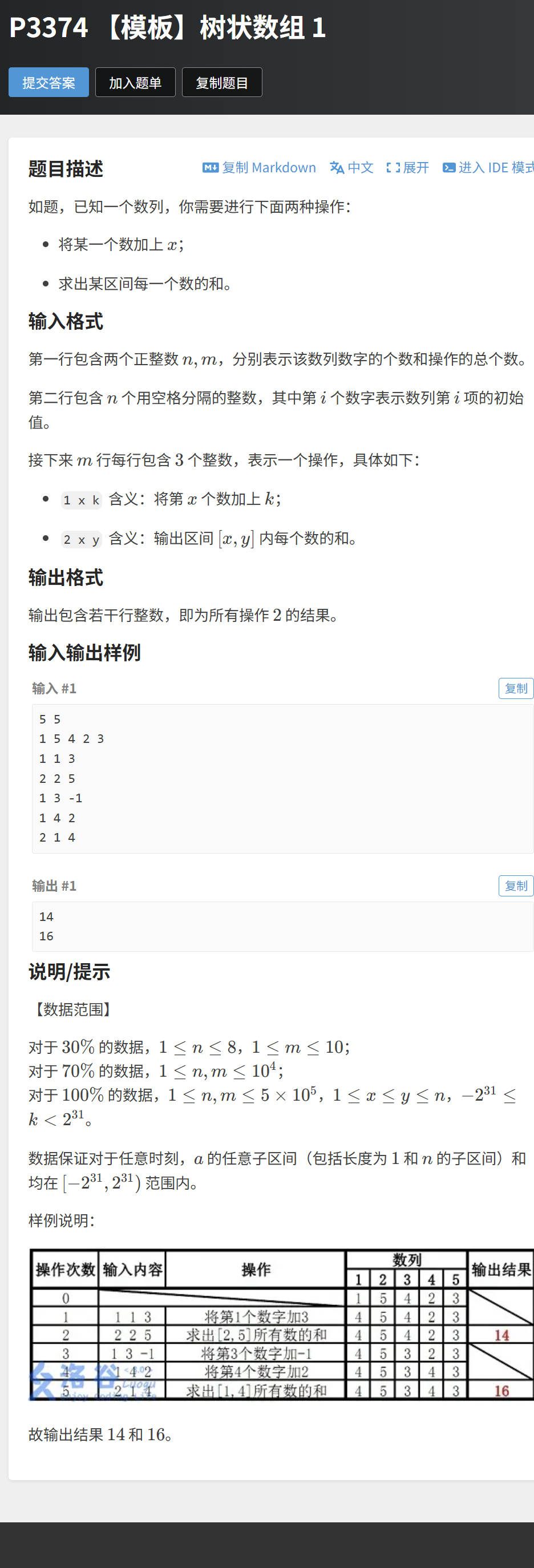 // 查询[2,5]的和:5+4+2+3=14