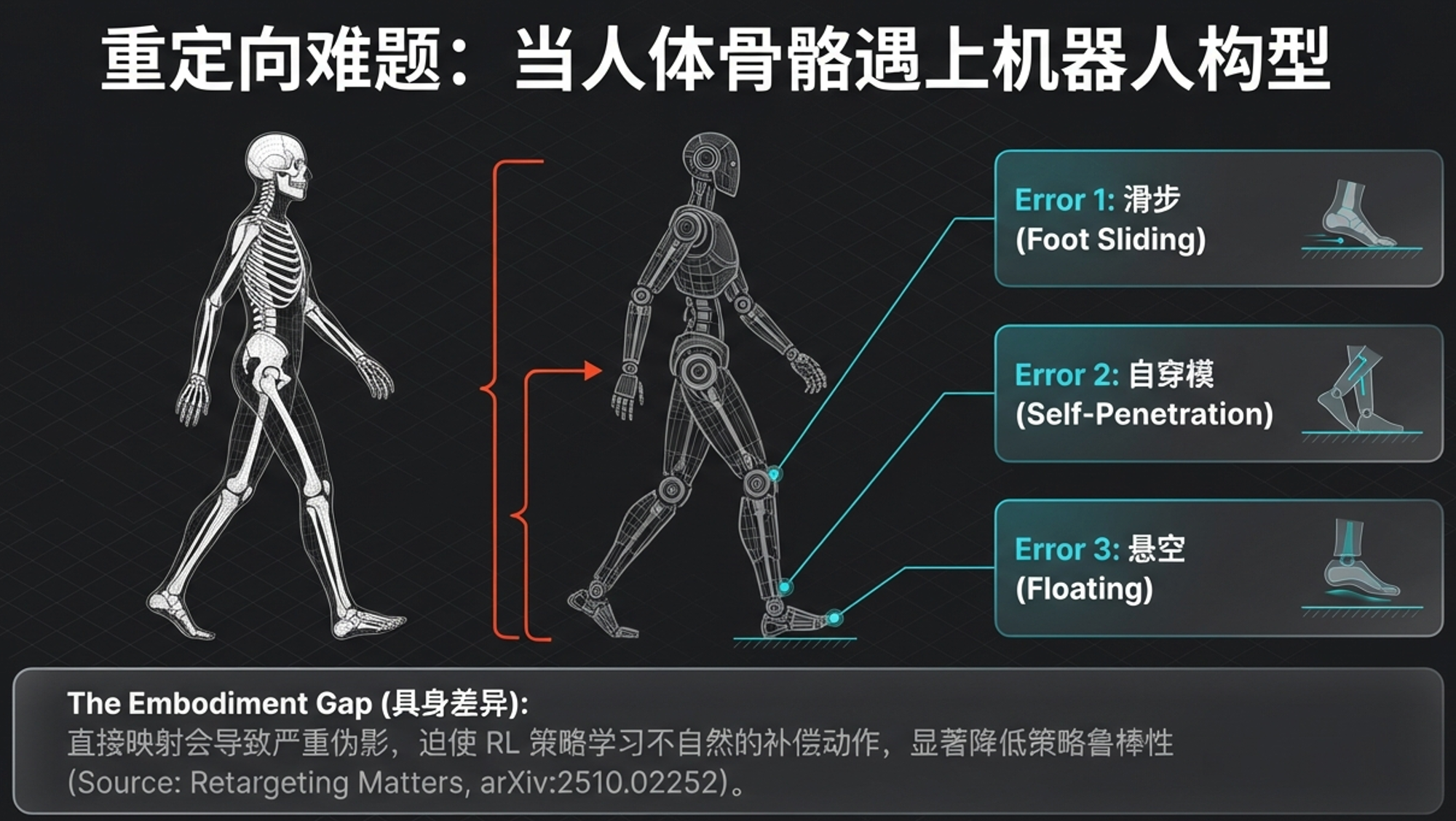 - 技术重点:通过 YanjieZe/GMR 的非均匀局部缩放算法,将人体的动作“翻译”给机器人。算法自动修正因腿长不同导致的“穿地”或“浮空”现象。