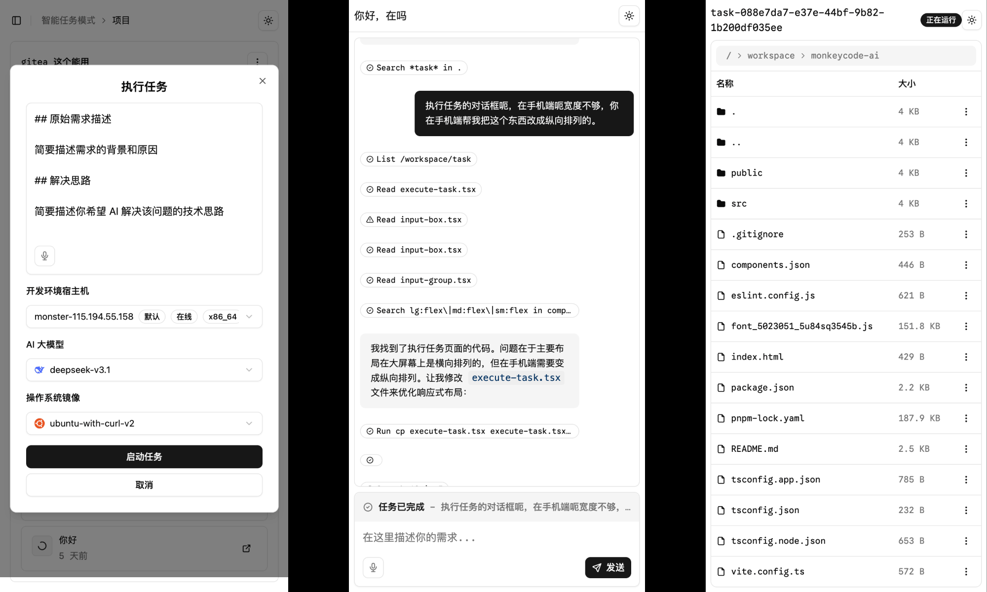 AI编程方案的核心优势,在于跳出了单一IDE插件的局限,构建起全链路AI研发体系,而支撑这一体系的,是其极具针对性的技术设计。从底层架构来看,它采用分层解耦+插件化扩展的四层架构,基础层基于Docker容器化技术实现环境隔离,同时提供标准化模型适配接口,可兼容Kimi K2、Qwen3等国产及海外主流模型,且支持轻量化部署,低配服务器也能开箱即用,大幅降低中小团队落地门槛;核心引擎层亮点尤为突出,代码生成+规范驱动的双引擎设计,让AI既能基于Transformer架构优化实现多语言代码全链路生成,又能对接企业内部编码规范,从源头规避代码不规范问题,破解了同类方案“生成代码无法直接落地”的痛点。不同于传统辅助载体仅能单任务运行,它支持多任务并行执行,例如我同时让其生成接口、审查代码、扫描安全漏洞,三项任务可同步推进,无需等待前一任务结束再启动下一项,对提升开发效率的作用立竿见影。此外,它能自动创建独立研发环境,本质是沙箱级安全隔离技术,AI所有操作均在沙箱内进行,任务结束后环境立即销毁,既彻底解决不同项目依赖冲突问题,也避免误操作破坏本地环境,省去工程师大量环境配置时间,这一特性对多项目并行的开发团队尤为友好。