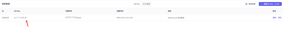 复制API Key,不要泄露给别人,自己拿个小本本记下来就行