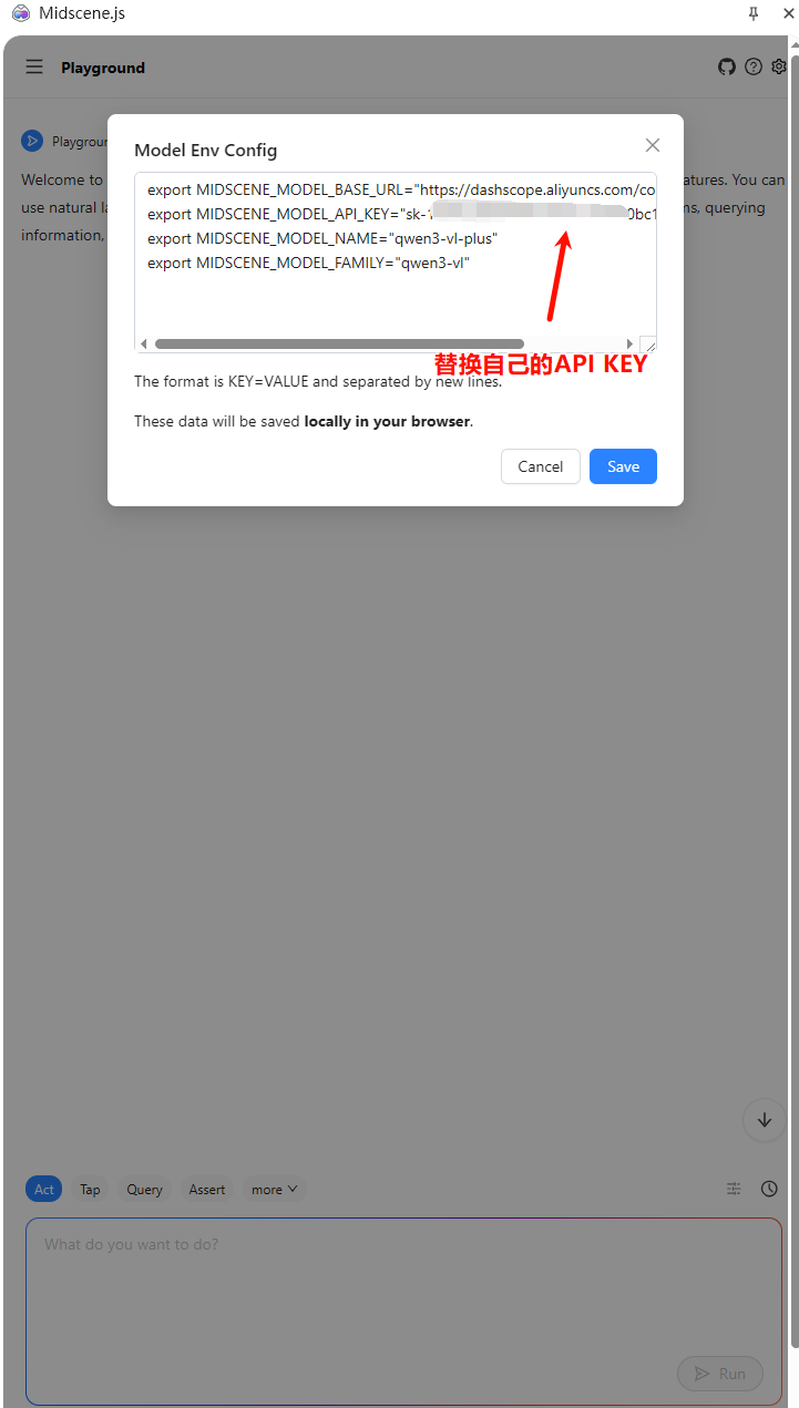 Midscene Chrome 插件中,你也可以使用这种 export KEY="value" 配置格式# 替换为你自己的 API Key