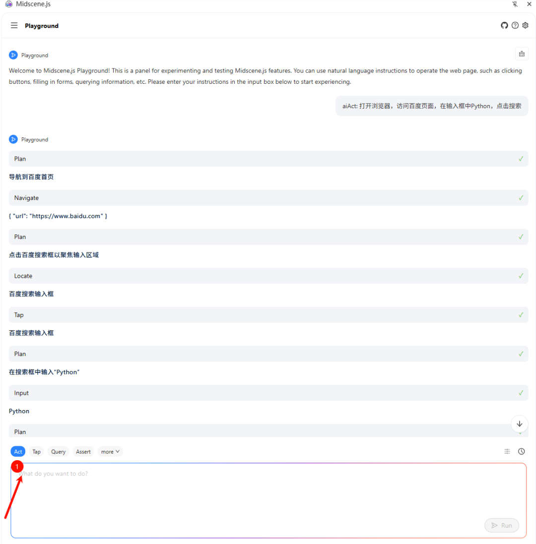 由于本篇教程,并不是专门讲解Midscens的特性,主要是让大家提前感受一下AI测试所带来的实际效果。