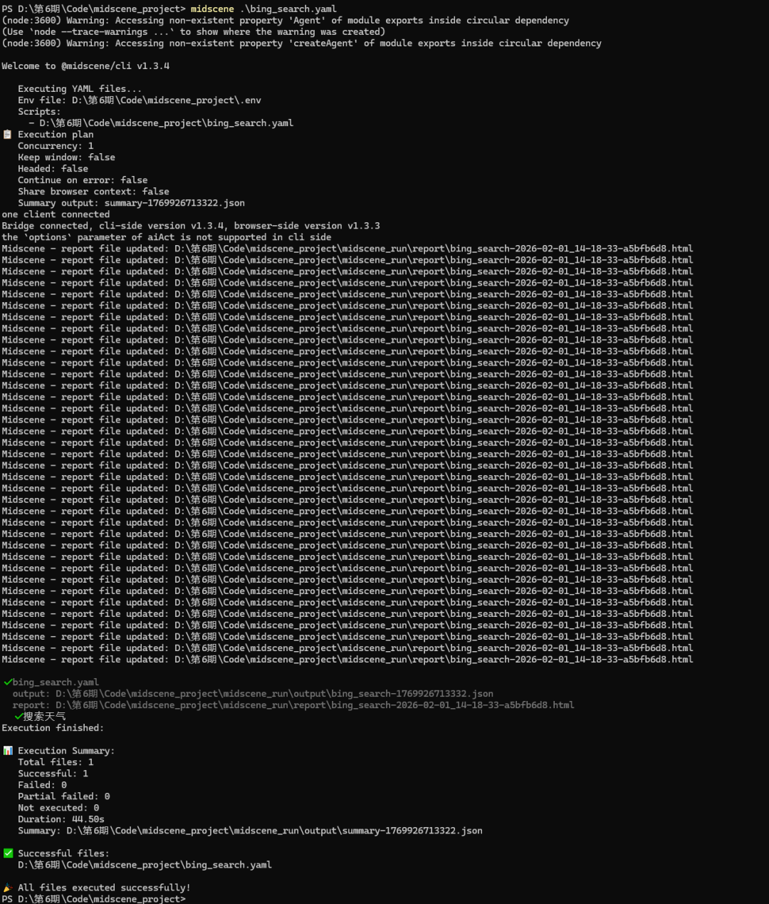midscene './scripts/**/*.yaml'7、执行完成后,输出目录会包含: