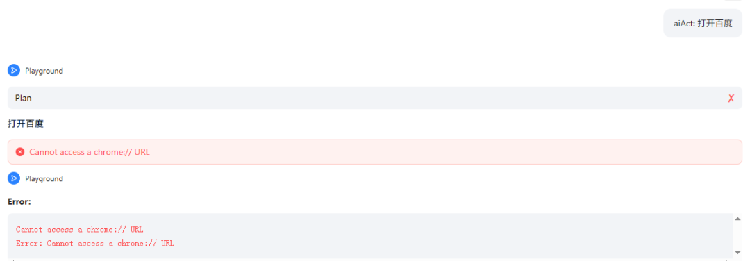 也就意味着,大家用Midscene浏览器插件进行AI自动化时,要先停留在某个页面,至少要确保地址栏不能为空,这个有点小鸡肋。当然影响不大,看官方后续会不会优化一下吧。