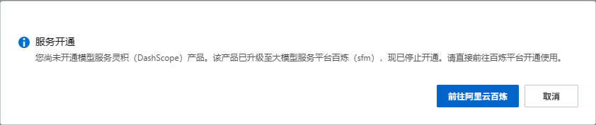 2、点击开通服务(DashScope 模型服务),跳转到阿里云百炼平台