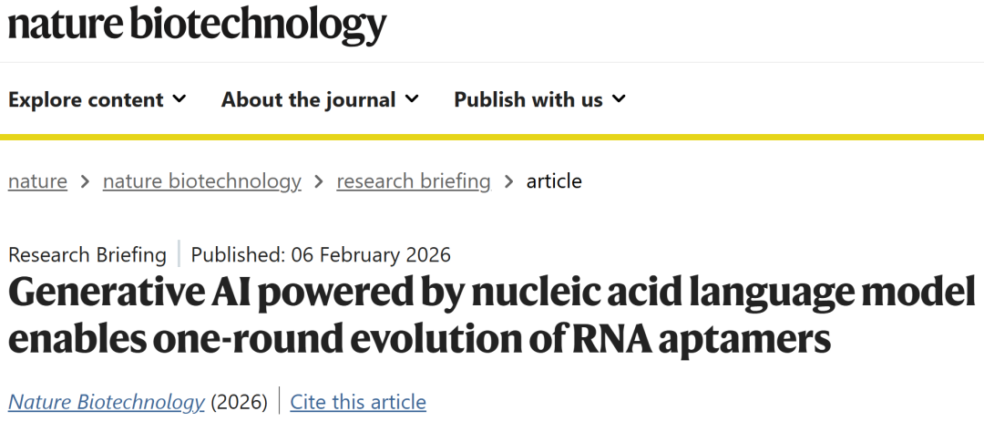 Generative AI powered by nucleic acid language model enables one-round evolution of RNA aptamers. Nat Biotechnol (2026).