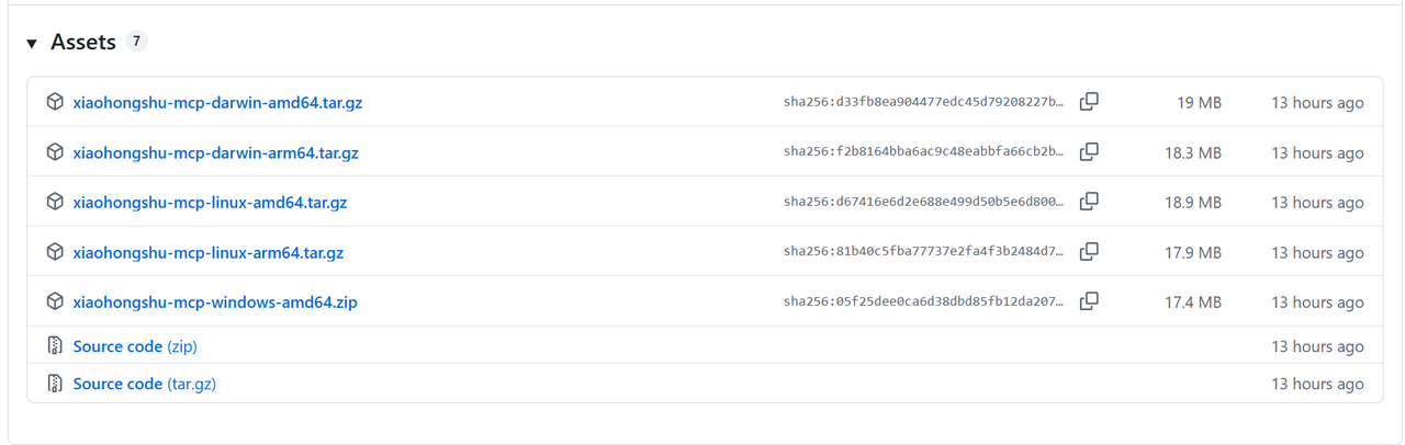 • Windows x64: xiaohongshu-mcp-windows-amd64.exe