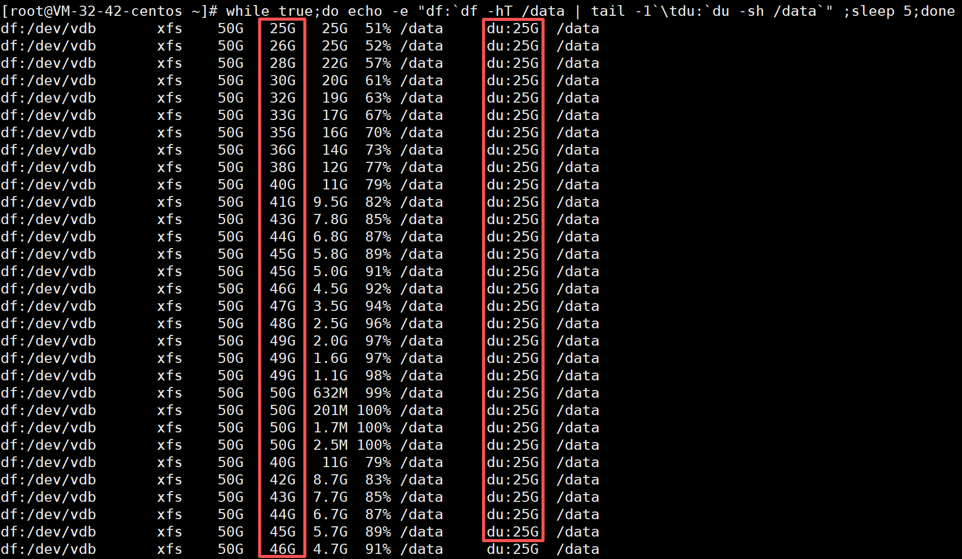 由于du和df看到的结果不一样,最开始想到的是预分配问题,但本次并不是.