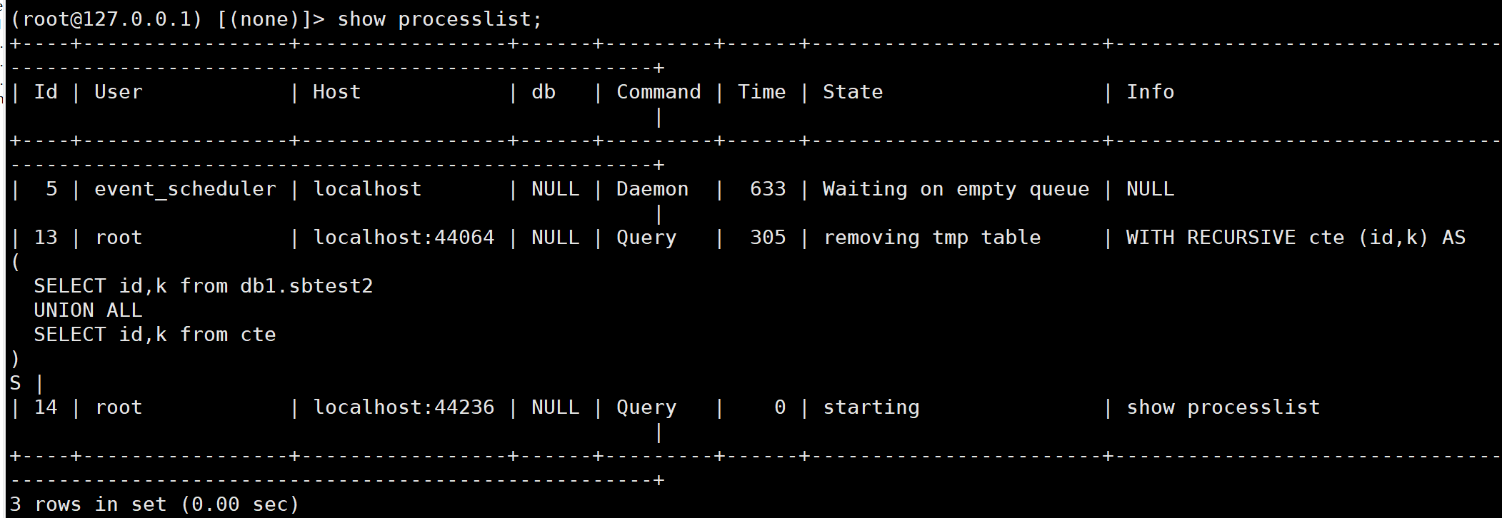 SELECT id,k from db1.sbtest2