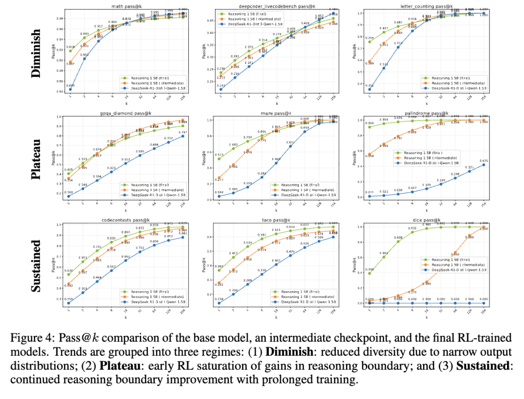 4.2 解析ProRL的推理边界:减弱、平台期和持续收益