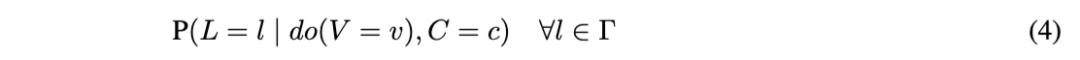 该公式实质上是一种后门调整(backdoor adjustment)[48],其中我们通过对混杂因素 O 的分布进行积分来考虑其影响。这消除了混杂偏差,从而得到 V 对 L 的无偏因果效应。