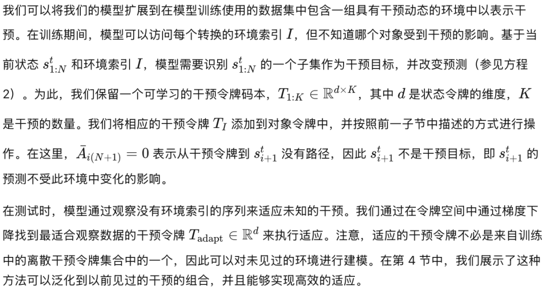 从概念上讲,我们认为为了实现高效的适应能力,世界模型的结构应该反映出所观察到的动力系统的底层稀疏因果结构,并且这些结构应该是局部的。为了说明我们的观点,考虑交通行为的场景:当前往车辆靠道路另一侧行驶的国家时,交通规则会发生变化。尽管根据道路边界,车辆之间的相对位置可能会改变,但大多数交通行为(例如红灯停车或车道保持)仍然保持不变。一个能够在这种环境下高效适应的世界模型,应仅模块化地更新一小部分已学到的动力学(即车辆相对于道路边界的相对位置),而让其他动力学保持不变。