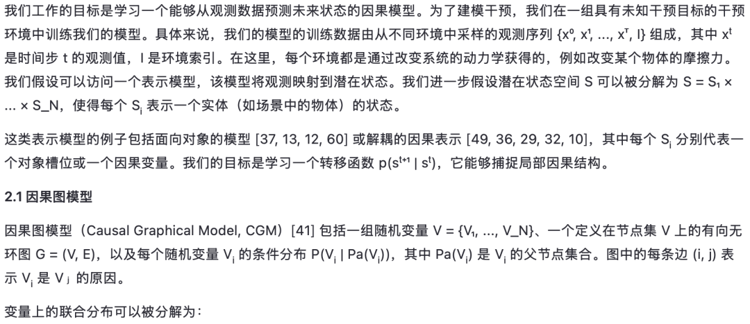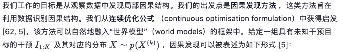捕捉这样一个直觉:即使面对环境变化,关于世界的大部分知识仍然可以被复用。稀疏机制变化假设(Sparse Mechanism Shift hypothesis)[39, 49, 3] 表明,自然的数据分布变化可以通过因果机制的稀疏变化来解释。这意味着一个反映世界因果结构的世界模型可以通过仅更新模型的一小部分来高效地适应变化,而模型的大部分保持不变。