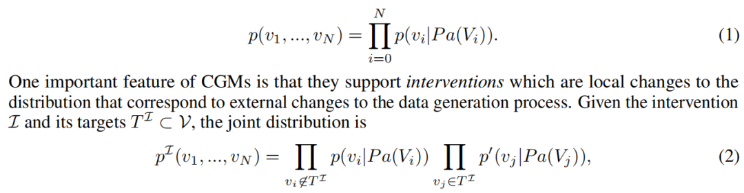 我们的观点受到“稀疏机制转移假设”(sparse mechanism shift hypothesis)[39, 49, 3] 的启发,该假设指出自然发生的分布变化可以归因于对因果机制的稀疏干预。形式上,这意味着大多数合理的环境变化可以通过改变公式(1)中的一个小的条件分布子集来建模,其余部分保持不变。