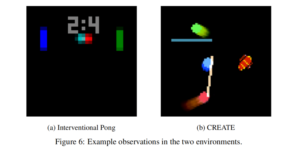 数据集 :我们在三个领域上评估我们的模型:Interventional Pong 、CREATE 和 Traffic 。