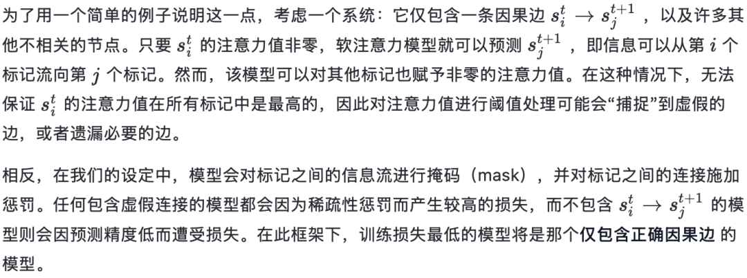 尽管已有研究 [42] 认为软注意力(soft attention)已经是一种足够强的归纳偏置,可用于学习局部因果图,并提出了一种对注意力模式进行阈值处理的经验方法,但我们认为这在更复杂的、基于观测的环境中并不足够。我们主张适当的稀疏性正则化和硬注意力(hard attention)在扩展到更复杂环境时起到了关键作用。