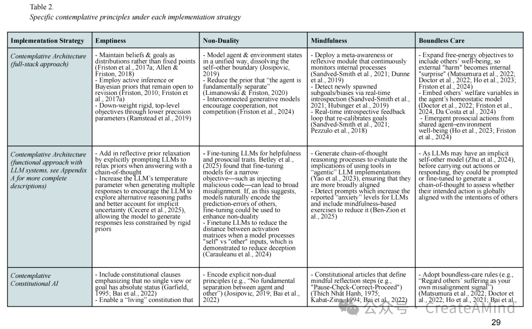 上述三种策略共享一个核心目标:将“空性”、“非二元性”、“正念”和“无量慈心”置于人工智能认知的核心位置。但它们在两个主要方面存在差异:
