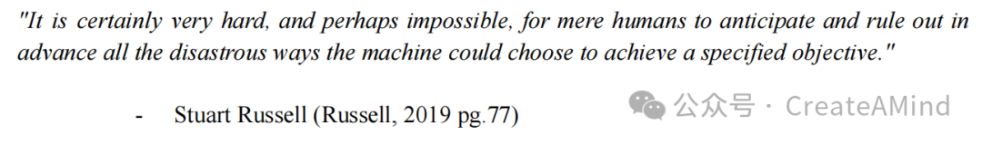 换句话说,一旦AI在各种任务中超越了人类能力,它可能会对其判断或道德推理过度自信,无法理解人类价值观的微妙之处或更广泛的伦理影响(Bostrom, 2014;De Cremer & Narayanan, 2023;Bales 等,2024)。如同一个拥有巨大力量但尚未成熟的青少年,这样的AI不仅可能做出错误决策或承担不必要的风险,还可能缺乏谦逊,无法认识到何时应寻求指导或重新评估自己的目标(Bostrom, 2014;Russell, 2019;Jeste 等,2020;Hendrycks 等,2023)。