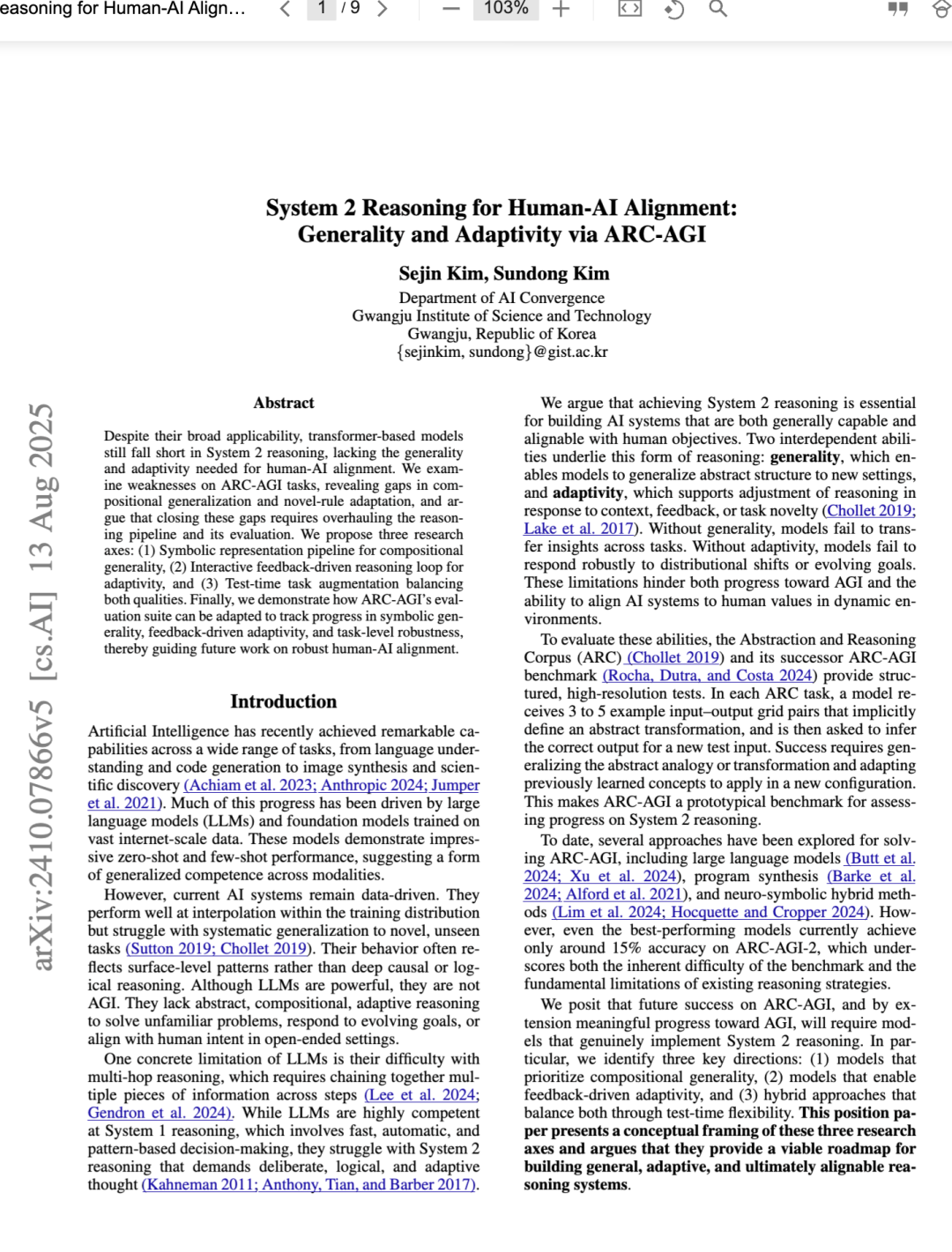 在本文中,我们提出应将 ARC 不仅视为一个基准,更应视为 AGI 级别推理的一个原则性缩影(principled microcosm)。其设计融合了通用性、适应性和符号抽象等挑战,而这些正是系统2认知的核心要素。通过明确针对这些能力,ARC 使得我们能够评估那些旨在实现更稳健、通用推理的人工智能系统。因此,在 ARC 上取得进展不仅关乎经验性能的提升,更是迈向开发具备适应性、与人类对齐的智能系统的重要一步。