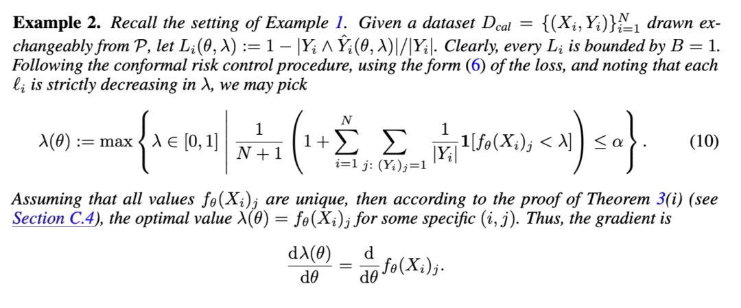 共形训练(conformal training)[47] 的梯度可视为上述情形 (i) 的一个特例(参见附录E)。我们现在说明,情形 (i) 也直接适用于例1中所考虑的假阴性率(FNR)损失。