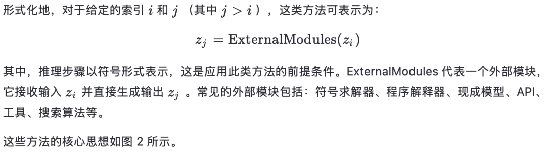 为解决推理函数中的错误,一个有前景的策略是用外部符号方法替代自回归式的推理函数,以增强中间推理步骤的严谨性。其基本直觉在于:LLM 本身并不擅长精确的长链推理;因此,让它们学会调用外部模块,是解决复杂推理问题更有效的方式。